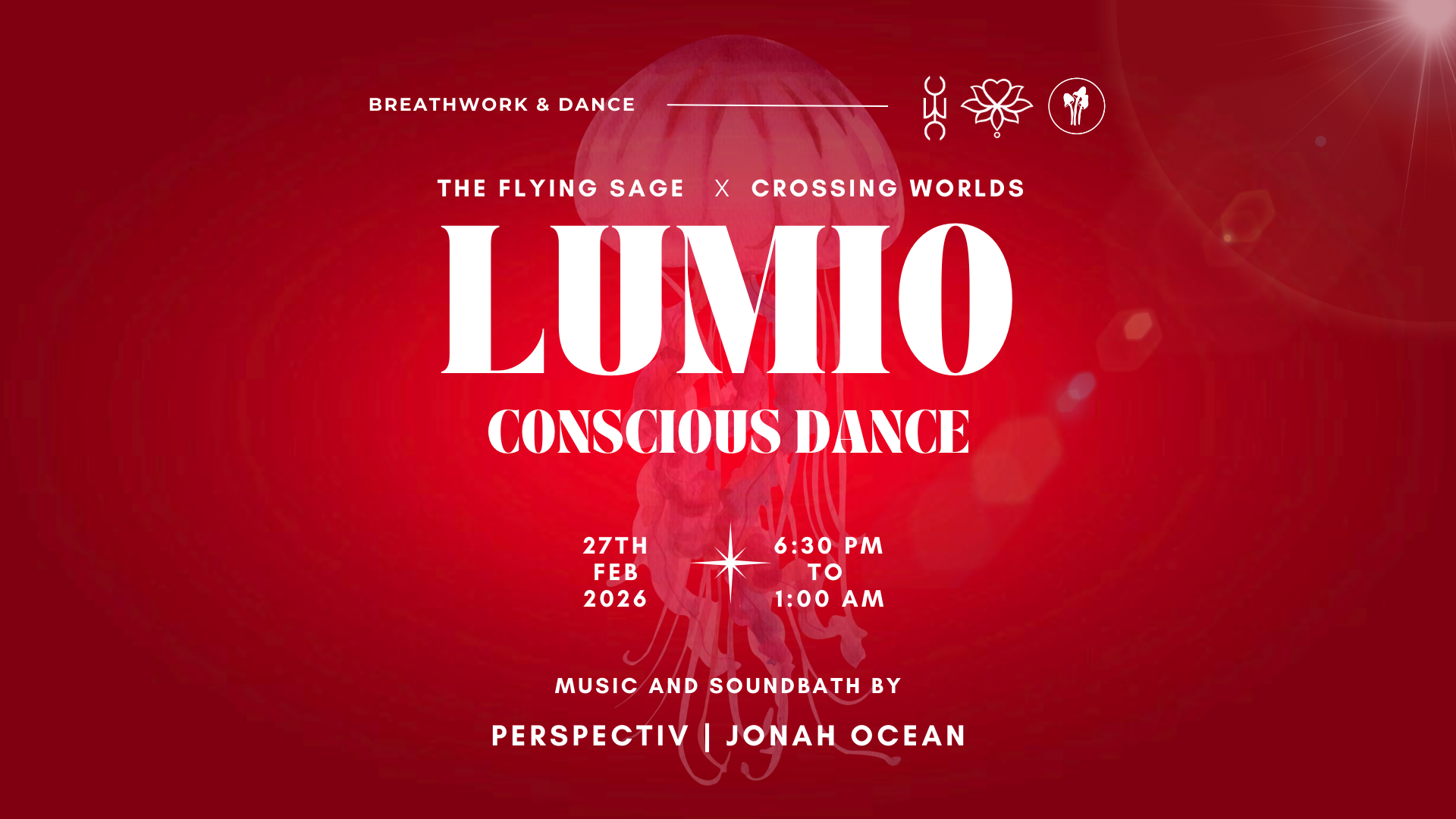 The Flying Sage and Crossing Worlds are excited to be collaborating to bring you Lumio. This is your invitation to a conscious dance experience where freedom, presence and embodiment take center stage. This is a dance designed to facilitate your full expression.